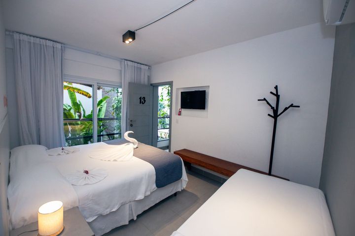 Nossos apartamentos são confortáveis e equipados com TV, ar-condicionado, frigobar, secador de cabelo e banheiro privativo — tudo para garantir uma estadia agradável e acolhedora.